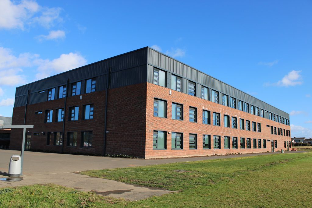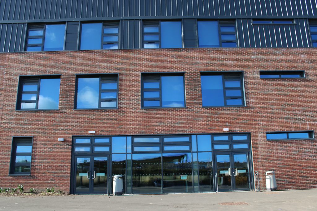 << Back to Projects page Project details: Curtain Walling – Metal Technology System 17 Windows – Metal Technology System 4-35 Doors – Metal Technology 10-35 Commercial Door Door Automatics – Tormax iMotion 1201 Swing Door